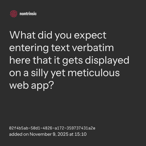 What did you expect entering text verbatim here that it gets displayed on a silly yet meticulous web app?