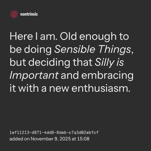 partagerHere I am. Old enough to be doing Sensible Things, but deciding that Silly is Important and embracing it with a new enthusiasm.