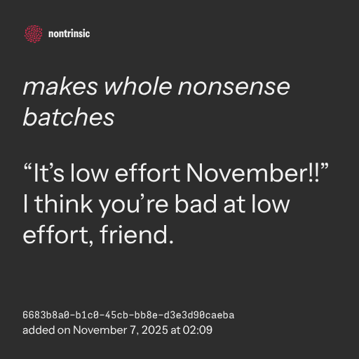 “It’s low effort November!!” I think you’re bad at low effort, friend.