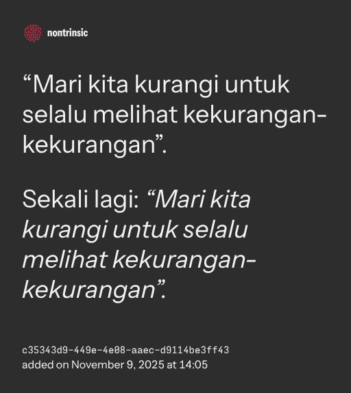 Sekali lagi: “Mari kita kurangi untuk selalu melihat kekurangan-kekurangan”.
