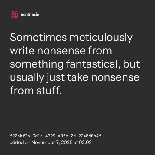 partagerSometimes meticulously write nonsense from something fantastical, but usually just take nonsense from stuff.