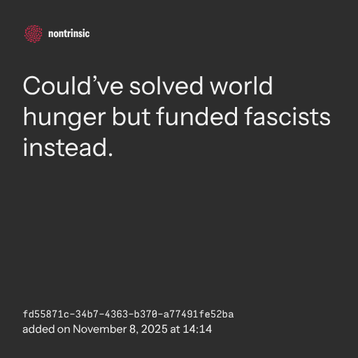 partagerCould’ve solved world hunger but funded fascists instead.