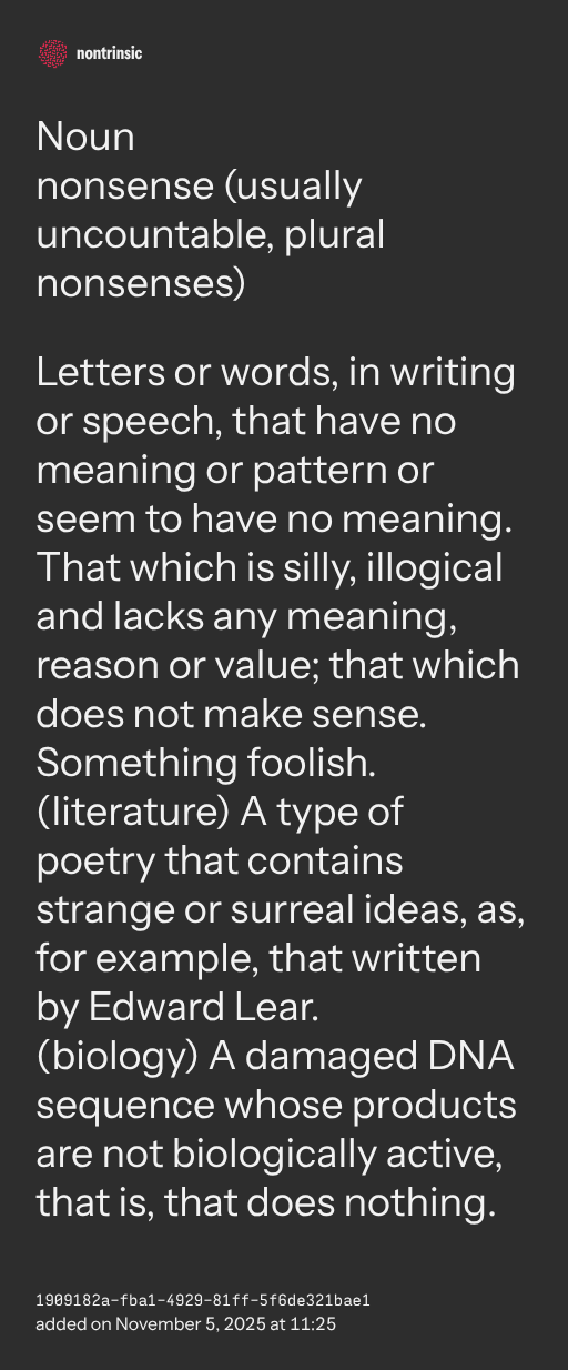 nonsense (usually uncountable, plural nonsenses)