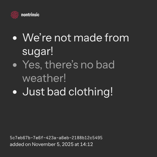 - Yes, there’s no bad weather!