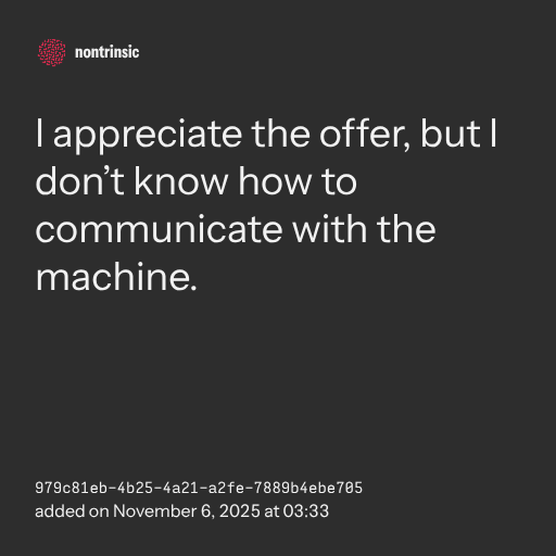 partagerI appreciate the offer, but I don’t know how to communicate with the machine.