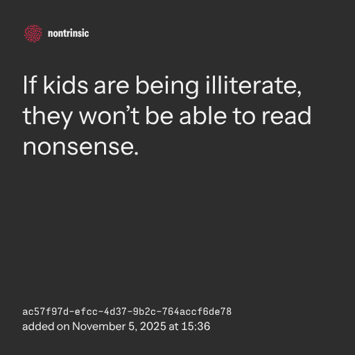 partagerIf kids are being illiterate, they won’t be able to read nonsense.