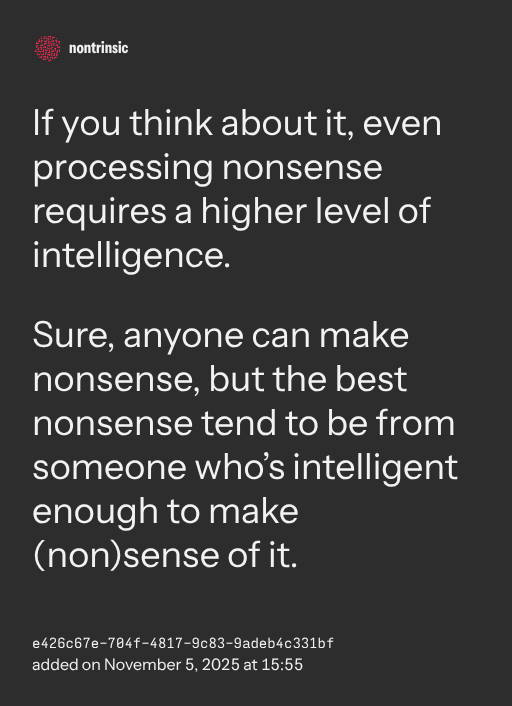Sure, anyone can make nonsense, but the best nonsense tend to be from someone who’s intelligent enough to make (non)sense of it.