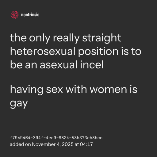 partagerthe only really straight heterosexual position is to be an asexual incel
