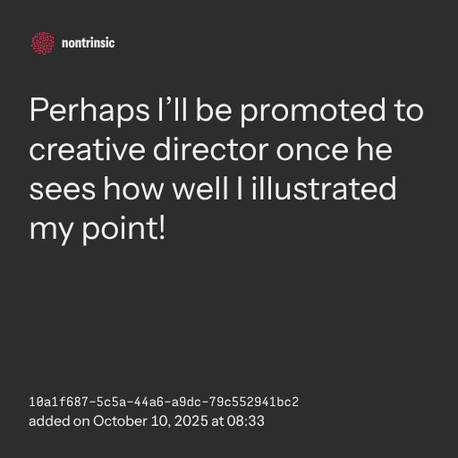 partagerPerhaps I’ll be promoted to creative director once he sees how well I illustrated my point!