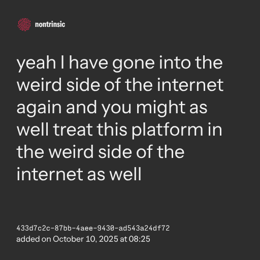 partageryeah I have gone into the weird side of the internet again and you might as well treat this platform in the weird side of the internet as well