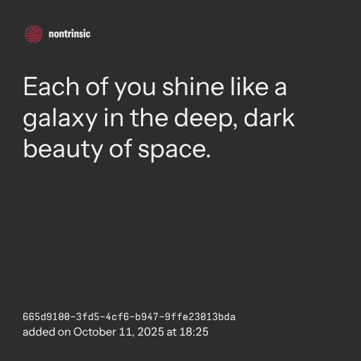 partagerEach of you shine like a galaxy in the deep, dark beauty of space.