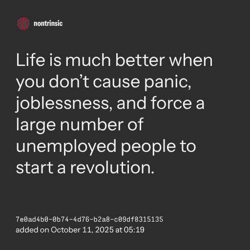 partagerLife is much better when you don’t cause panic, joblessness, and force a large number of unemployed people to start a revolution.