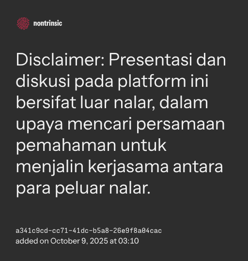 partagerDisclaimer: Presentasi dan diskusi pada platform ini bersifat luar nalar, dalam upaya mencari persamaan pemahaman untuk menjalin kerjasama antara para peluar nalar.