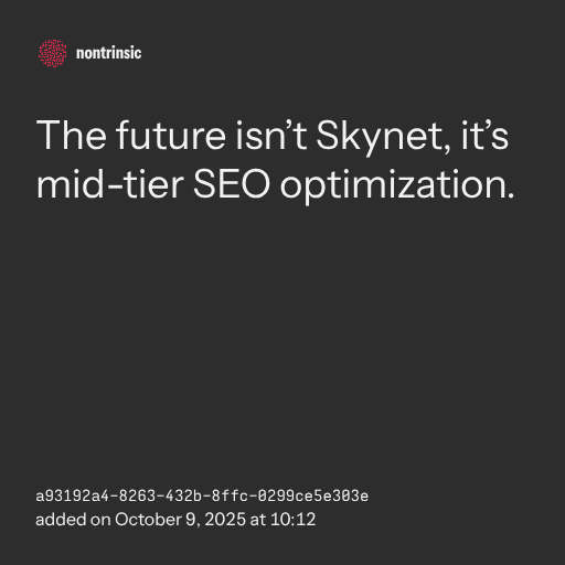 partagerThe future isn’t Skynet, it’s mid-tier SEO optimization.