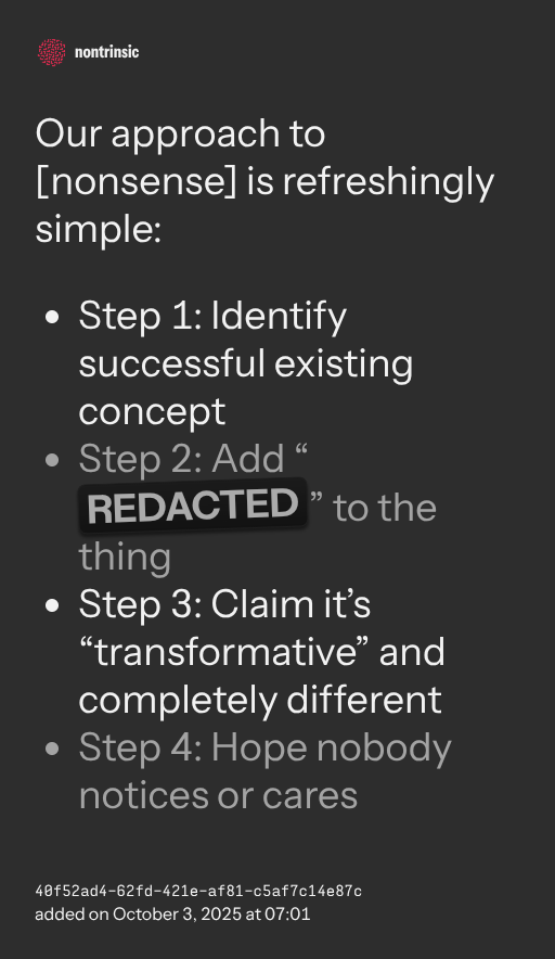 Do link back to us if you’re feeling generous, and maybe mention that the nonsense came from actual human beings who really did have nonsense (as opposed to being hallucinated by an AI, though at this point, who can tell the difference?).