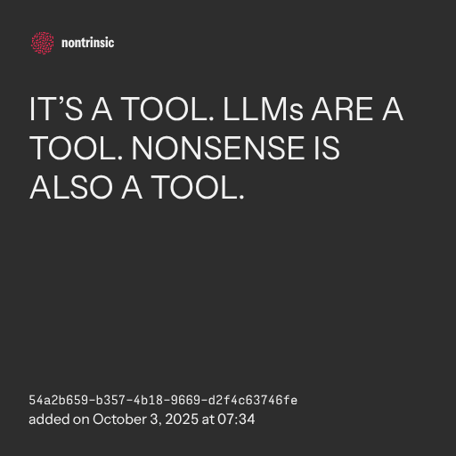 partagerIT’S A TOOL. LLMs ARE A TOOL. NONSENSE IS ALSO A TOOL.