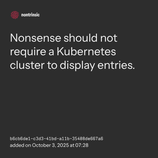 partagerNonsense should not require a Kubernetes cluster to display entries.