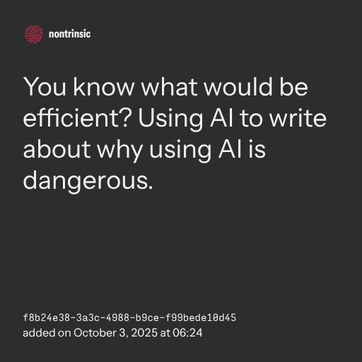 partagerYou know what would be efficient? Using AI to write about why using AI is dangerous.