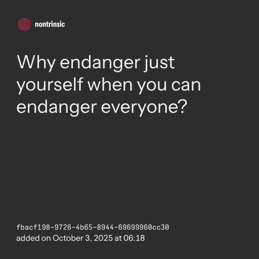 partagerWe appreciate innovative approaches to endangering humanity. Nonsense is (not) one of them.