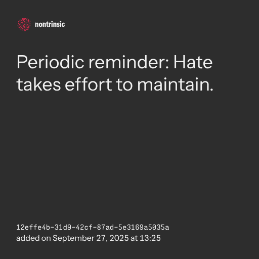 partagerPeriodic reminder: Hate takes effort to maintain.