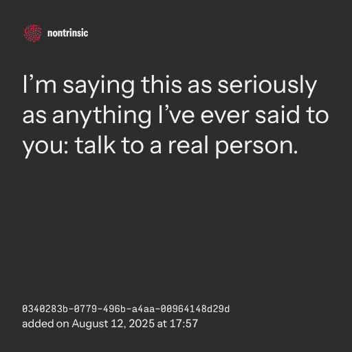 partagerI’m saying this as seriously as anything I’ve ever said to you: talk to a real person.