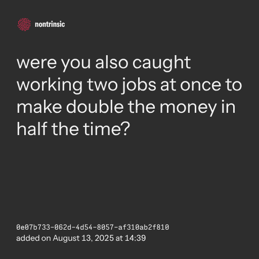 partagerwere you also caught working two jobs at once to make double the money in half the time?