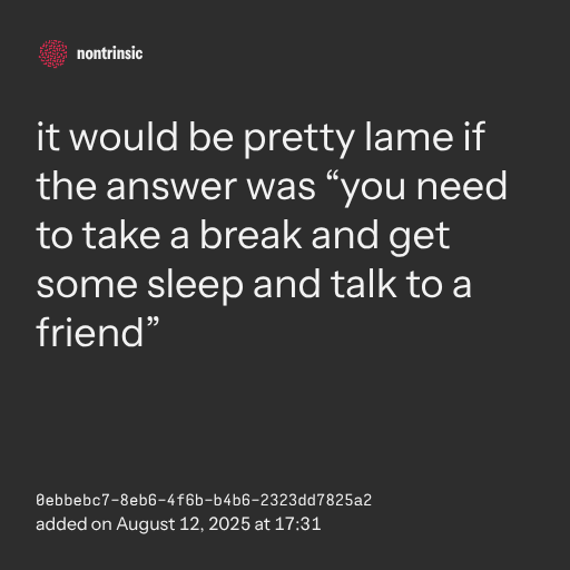 partagerit would be pretty lame if the answer was “you need to take a break and get some sleep and talk to a friend”