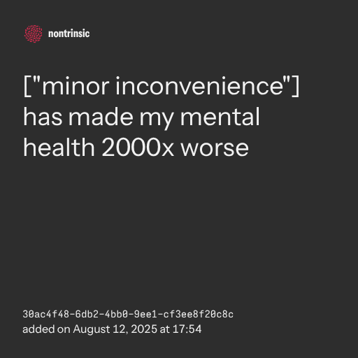 partager["minor inconvenience"] has made my mental health 2000x worse