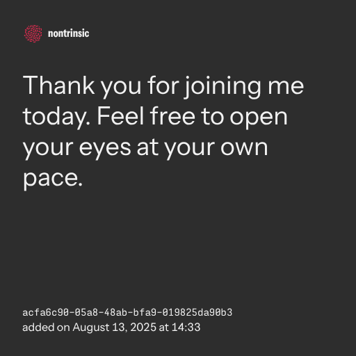 partagerThank you for joining me today. Feel free to open your eyes at your own pace.