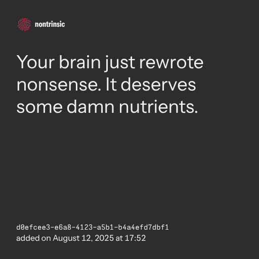 partagerYour brain just rewrote nonsense. It deserves some damn nutrients.