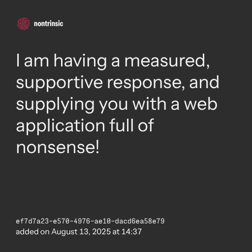 partagerI am having a measured, supportive response, and supplying you with a web application full of nonsense!