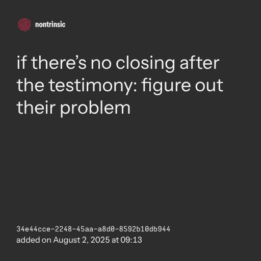 partagerif there’s no closing after the testimony: figure out their problem