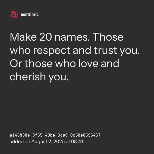 partagerMake 20 names. Those who respect and trust you. Or those who love and cherish you.