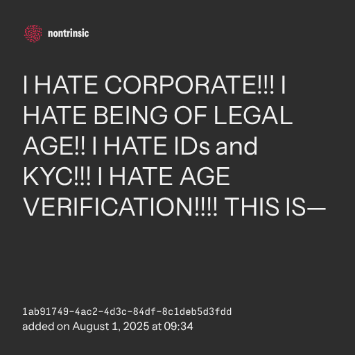 partagerI HATE CORPORATE!!! I HATE BEING OF LEGAL AGE!! I HATE IDs and KYC!!! I HATE AGE VERIFICATION!!!! THIS IS—