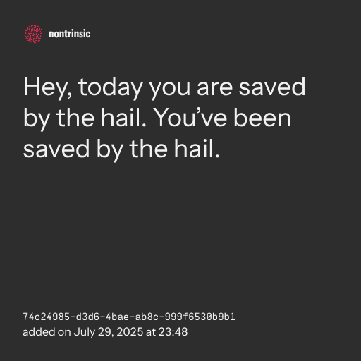 partagerHey, today you are saved by the hail. You’ve been saved by the hail.