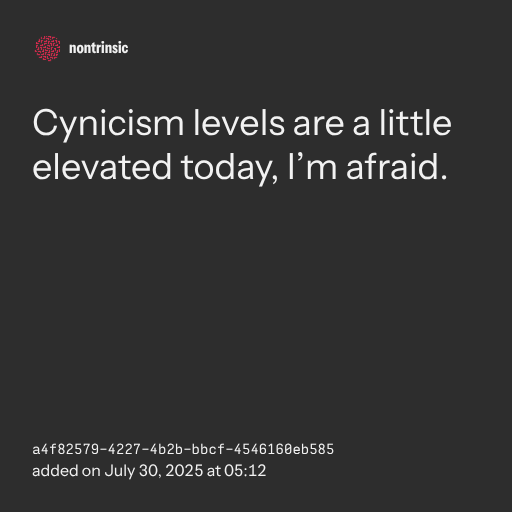 partagerCynicism levels are a little elevated today, I’m afraid.