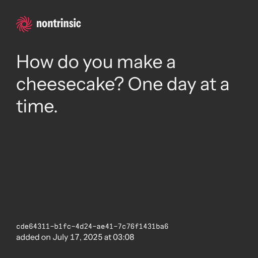partagerHow do you make a cheesecake? One day at a time.
