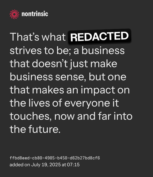partagerThat’s what REDACTED strives to be; a business that doesn’t just make business sense, but one that makes an impact on the lives of everyone it touches, now and far into the future.