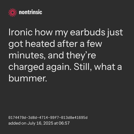 partagerIronic how my earbuds just got heated after a few minutes, and they’re charged again. Still, what a bummer.