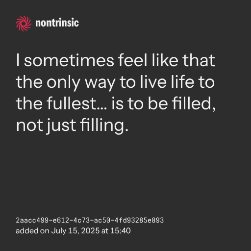 partagerI sometimes feel like that the only way to live life to the fullest… is to be filled, not just filling.