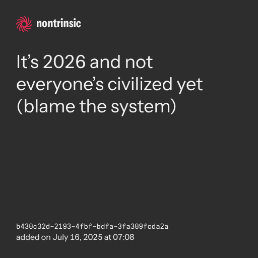partagerIt’s 2026 and not everyone’s civilized yet (blame the system)