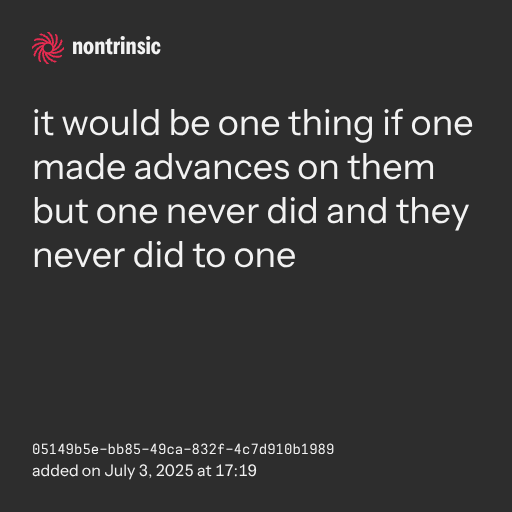 partagerit would be one thing if one made advances on them but one never did and they never did to one