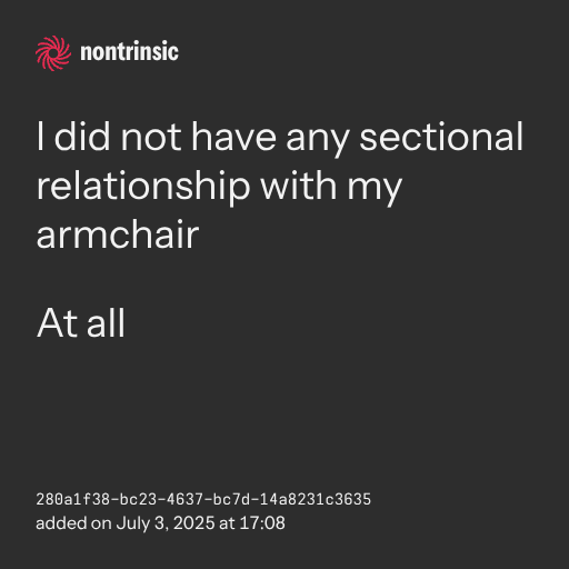 partagerI did not have any sectional relationship with my armchair