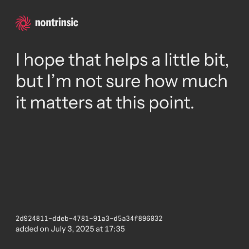 partagerI hope that helps a little bit, but I’m not sure how much it matters at this point.