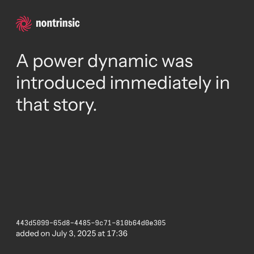 partagerA power dynamic was introduced immediately in that story.