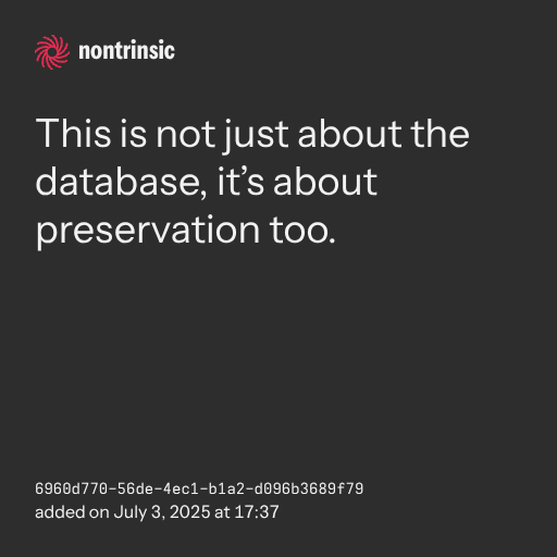 partagerThis is not just about the database, it’s about preservation too.