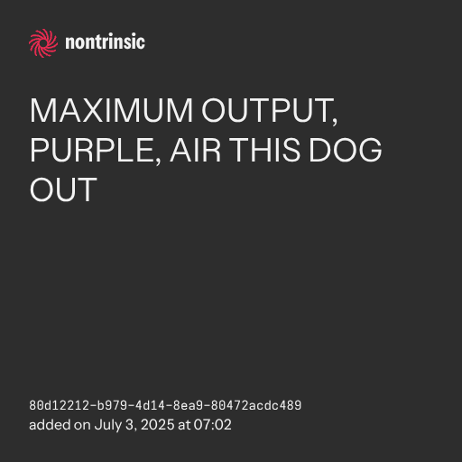 partagerMAXIMUM OUTPUT, PURPLE, AIR THIS DOG OUT