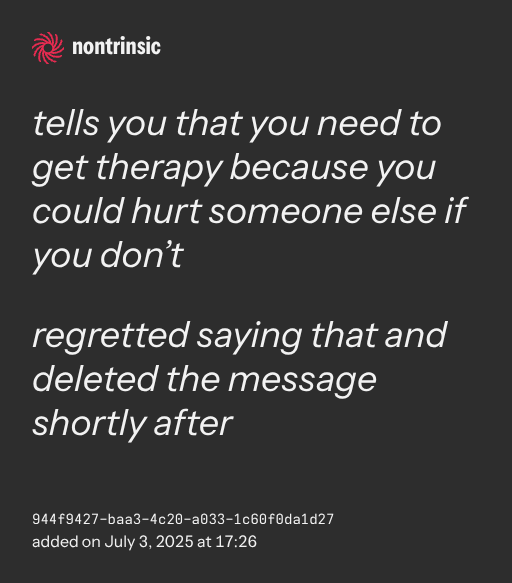 partagertells you that you need to get therapy because you could hurt someone else if you don’t