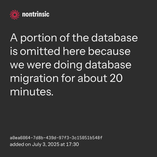 partagerA portion of the database is omitted here because we were doing database migration for about 20 minutes.