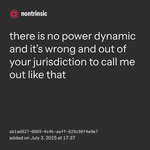partagerthere is no power dynamic and it’s wrong and out of your jurisdiction to call me out like that